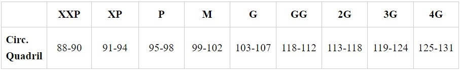 Tabela de medidas: